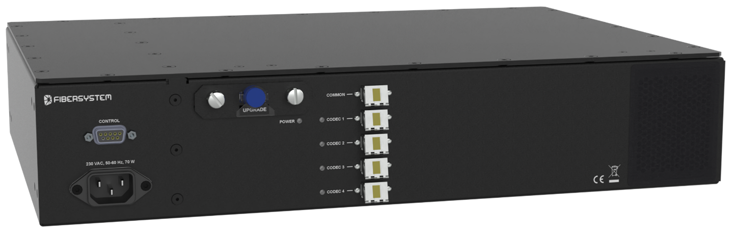 Codec switch 1-4 is certified for TEMPEST Level A and RÖS U1 for protection against compromising emissions. It is intended to be used together with an MPO fiber link to the Front-end Extender and up to four (4) Codec Extenders.