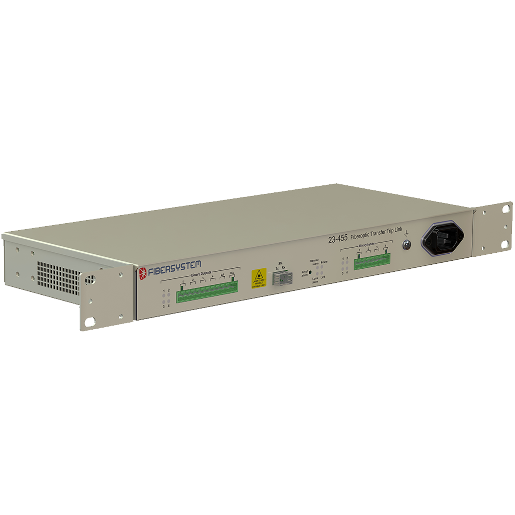 Fibersystem Fiber Optical Transfer Trip Link (23-450) is intended to be used for remote trip and or sensing to minimize need of local controllers. The link is bidirectional for dual side control or sense back confirmation of command. I.e. a make or brake can be feed back to the controller to verify command action.
